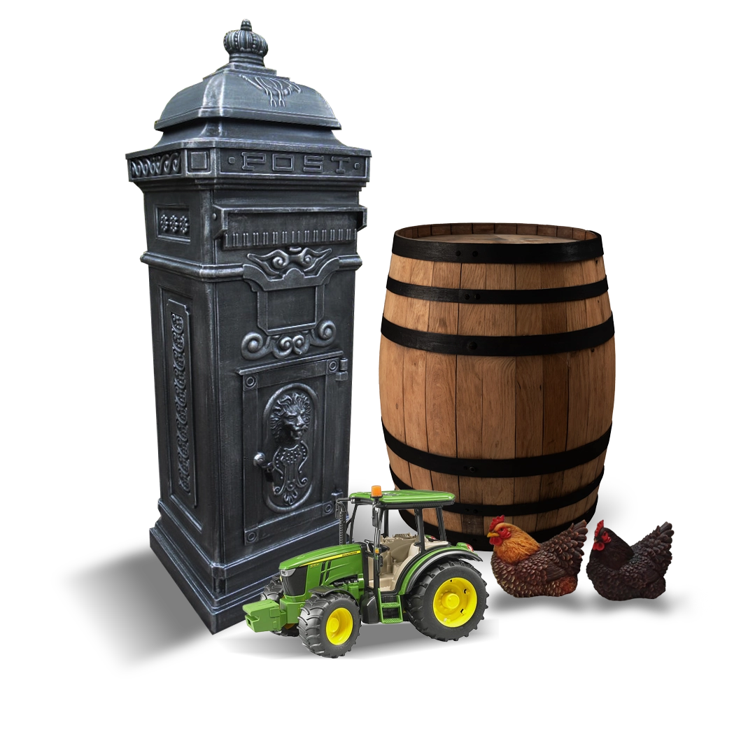 Naast brievenbussen en regentonnen hebben wij ook wijnvaten, polyester boerderijdieren, windwijzers en geglazuurde huisnummers. Deze accessoires combineren functionaliteit met decoratieve waarde en maken je huis en tuin compleet.